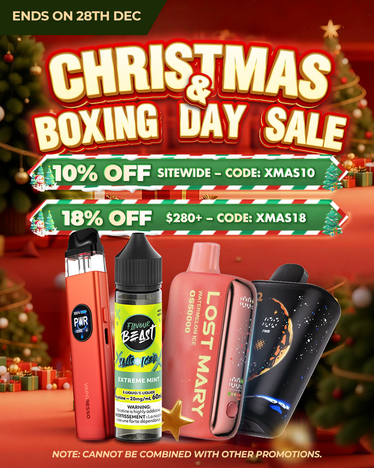 Expect some of the best Christmas vape discounts and Boxing Day vape deals in Canada—stay tuned for our full announcement!